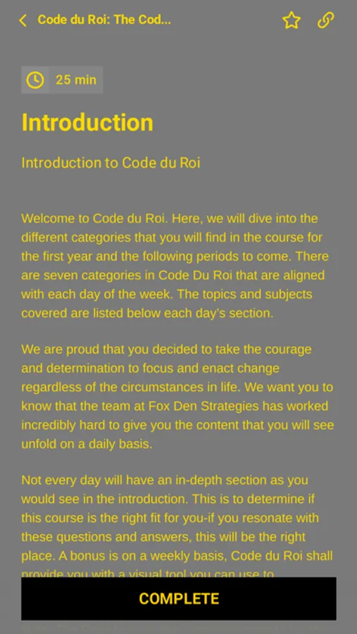Code Du Roi offers a wide range of features and resources tailored to address the unique challenges and aspirations faced by men. Whether you're aiming to enhance your fitness, cultivate mental resilience, nurture meaningful relationships, understand financials, or navigate your career, this app provides you with the tools, guidance, and motivation you need to succeed.