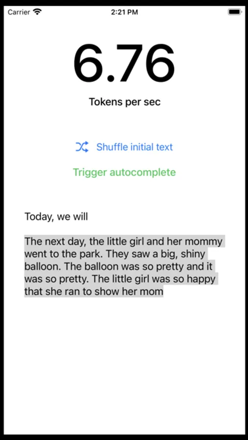 - Tap "Trigger autocomplete" to generate a tiny story!