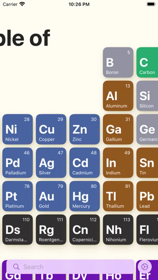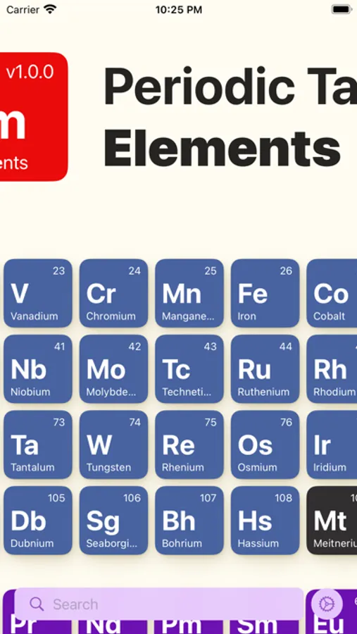 Intuitive Search Functionality: Seamlessly find specific elements within seconds using the search feature. Whether you're a seasoned scientist or a curious student, the app ensures easy access to the information you seek.