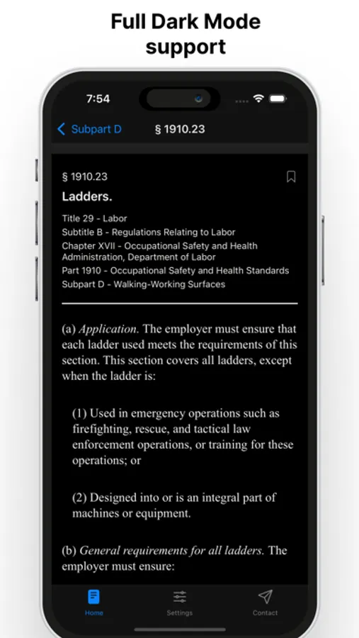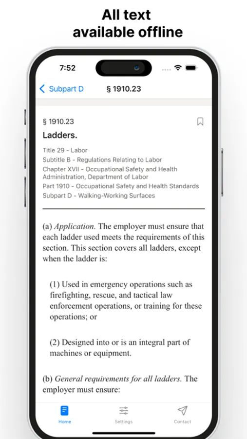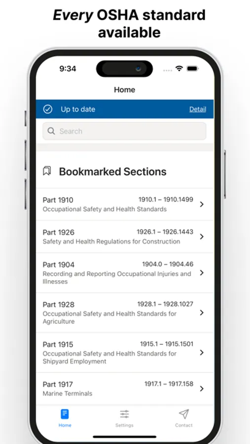 OSHA standards is updated automatically directly from the eCFR. No waiting months for an app update, the latest text is available as soon as it's available on eCFR.