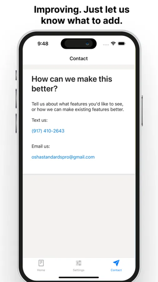 At OSHA Standards Pro, we prioritize our users' needs and feedback. We're rapidly building in response to new feature requests, and we'd love to hear what improvements you'd like to see..