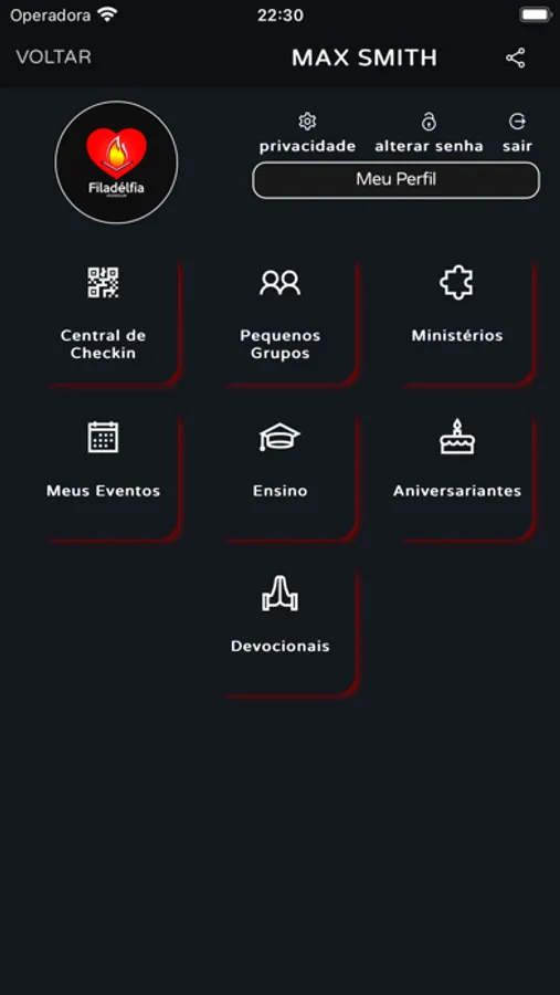 * No item Meu Perfil é possível atualizar seus dados cadastrais na Igreja;
