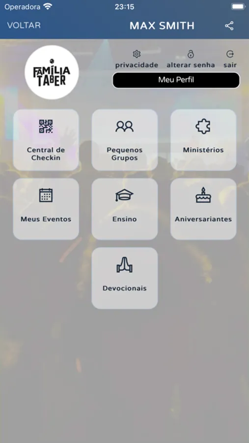 * No item Meu Perfil é possível atualizar seus dados cadastrais na Igreja;