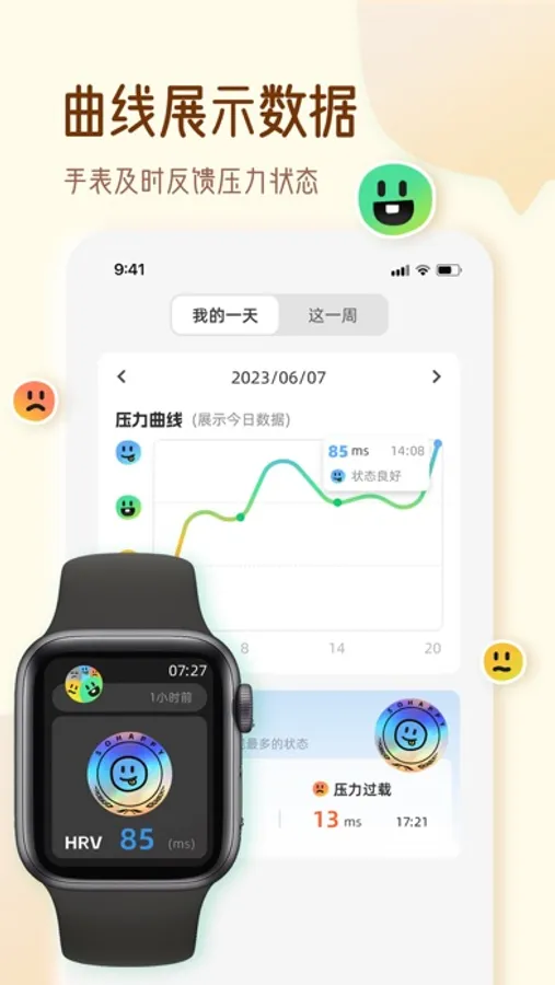 作为一款基于读取存储到健康内的心率数据来检测你的HRV(Heart Rate Variability,心率变异性)和静息心率的应用,TA能够随时提醒你的压力状态,让你更好地了解自己的身体状况。而且它通过对你的心率数据进行统计分析,给出相关的洞察,让你从中获得更多的健康收益。