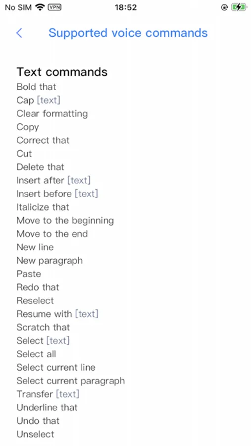 • Select, edit, and format text using voice commands, or navigate through report templates.