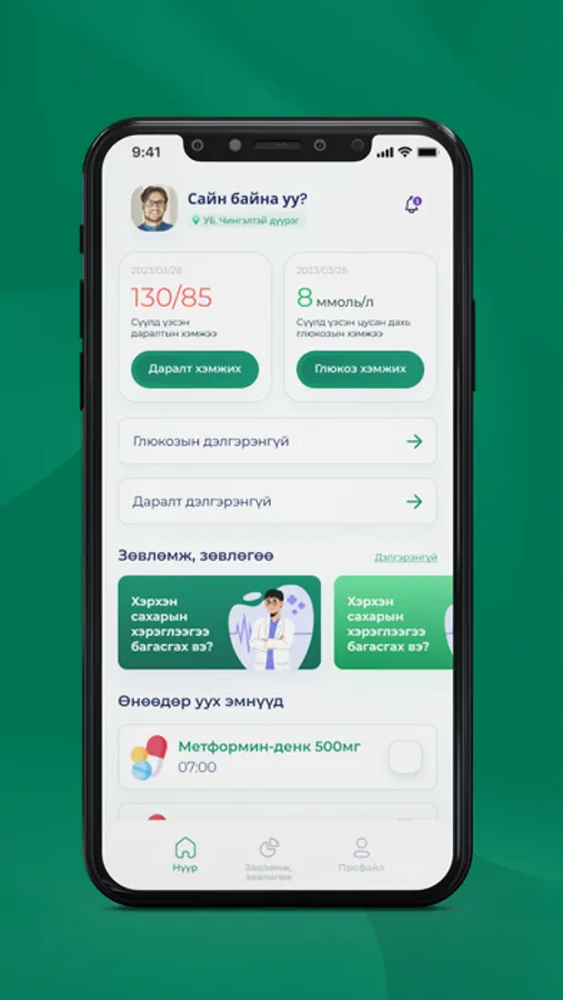 - Ухаалаг календарийн тусламжтайгаар харьяа ӨЭМТ-ийн эмчийн хяналтын үзлэг, шаардлагатай шинжилгээ хийлгэх товын тухай сануулга авах