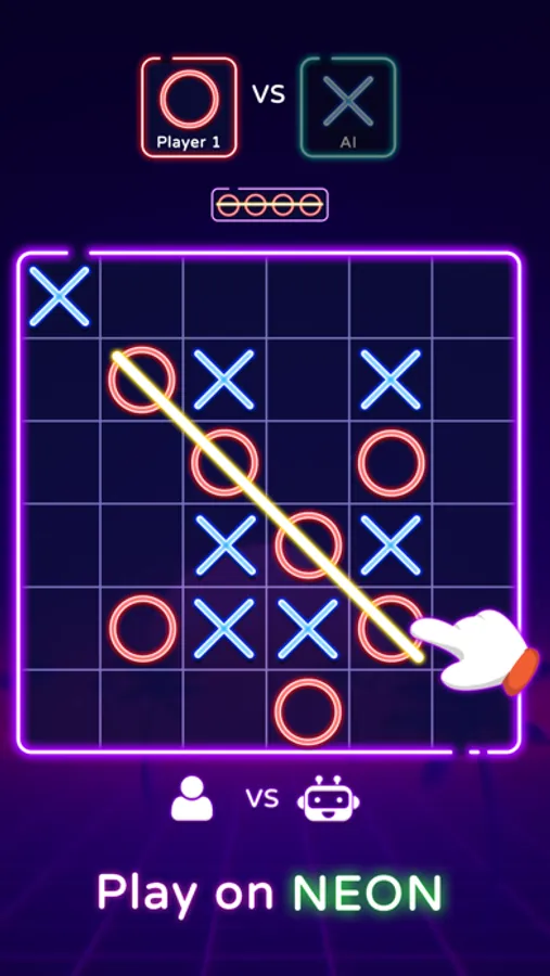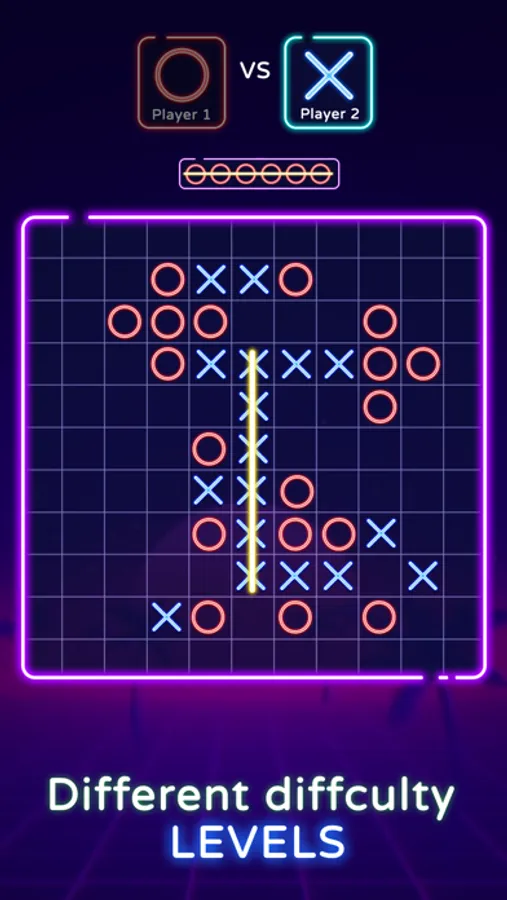 - Various difficulty levels in this tic tac toe game: 3x3,6x6,9x9,11x11 grid