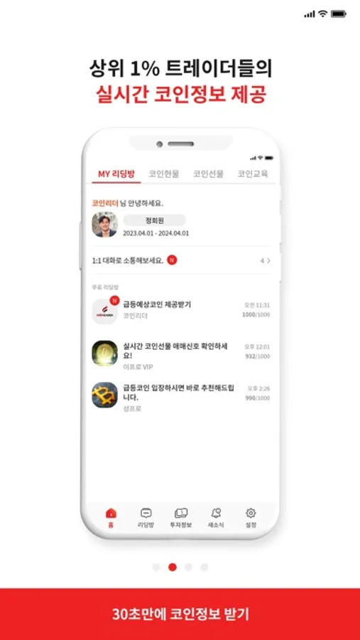 대한민국 상위 1% 트레이더들의 실시간 코인정보를 무료로 받아보세요.