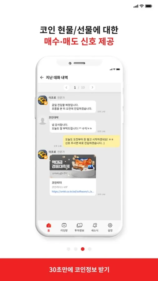 코인 투자전문가의 매수/매도 신호를 모두 기록하여 공유 및 제공.