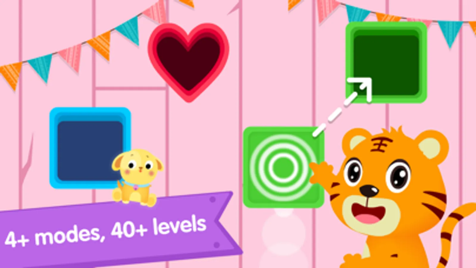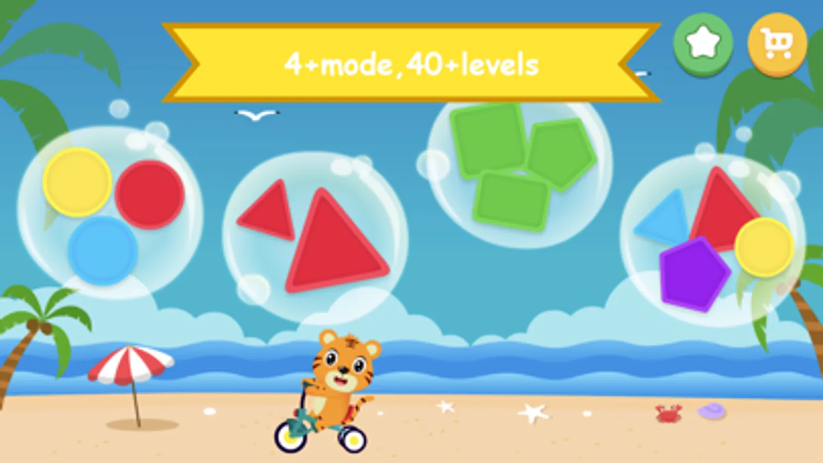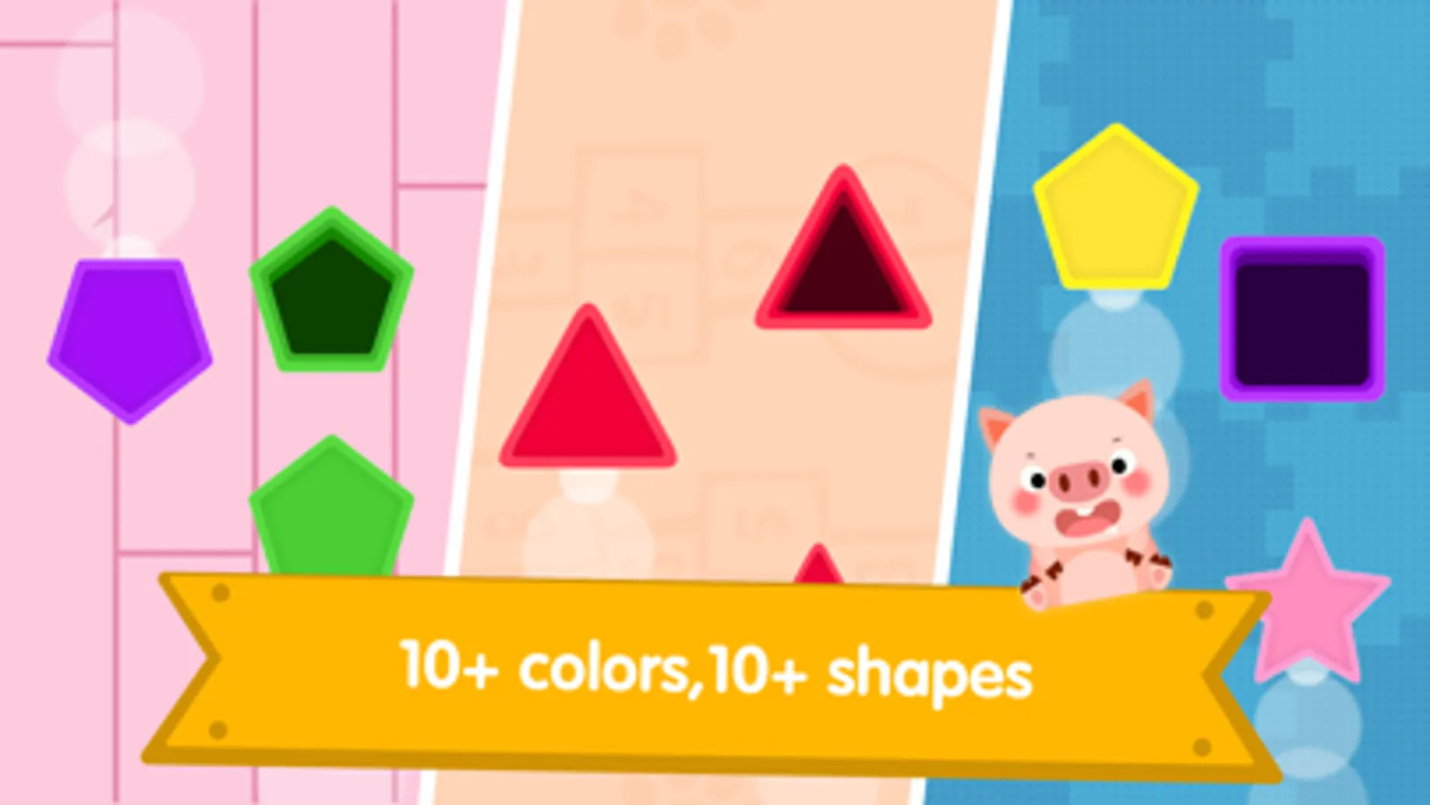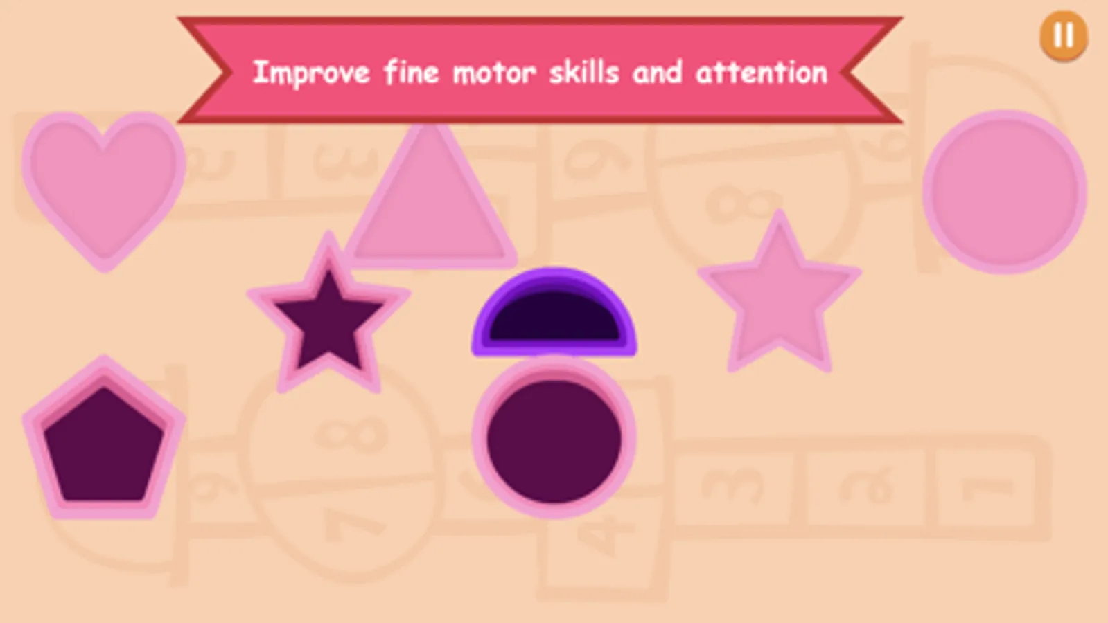 The main skill given to the app is differentiating shapes. It includes simple shapes such as squares, triangles and circles as well as other shapes such as polygons, rhombuses. Matching is done through different combinations of colors and shapes to help your baby recognize basic shapes and colors