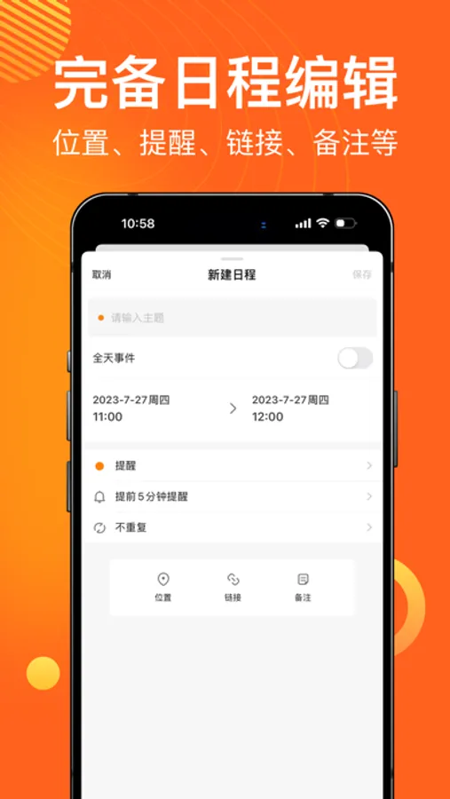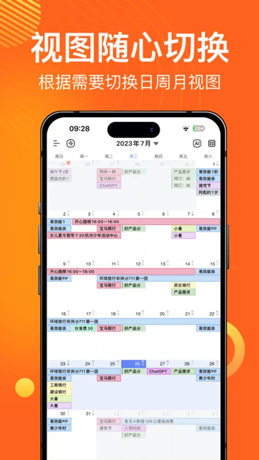 4.多彩标签分类:使用不同颜色的标签,轻松分类和区分各类日程,让您更清晰地组织您的时间。