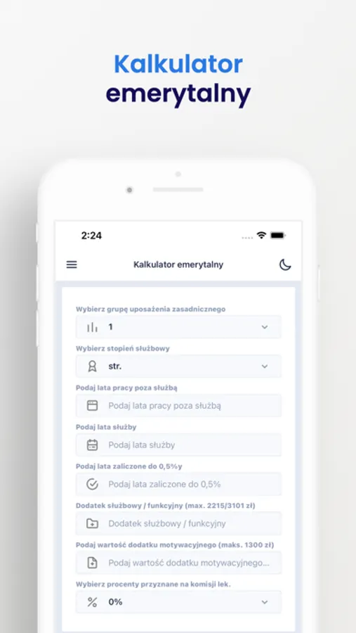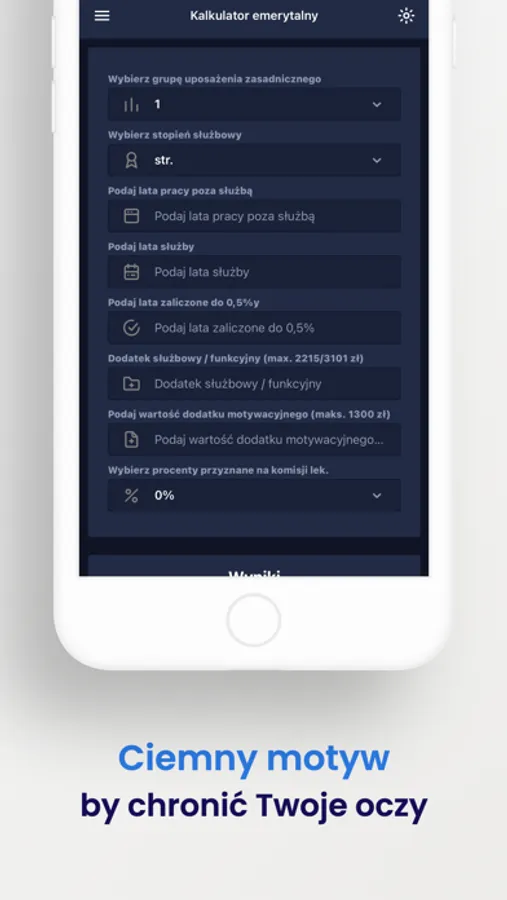 Interfejs aplikacji jest intuicyjny i prosty w obsłudze, co pozwala strażakom szybko i łatwo obliczać różne parametry związane z emeryturą i wynagrodzeniem.