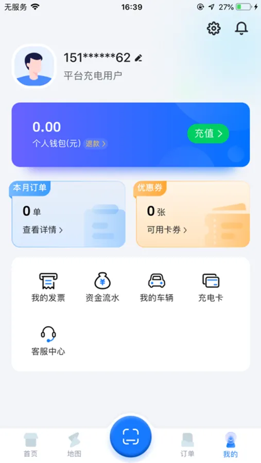 岳慧充app提供充电、扫码、找桩、营销活动等核心功能。用户可使用手机验证码注册并登录,在首页和地图页可以查找近距离以及带有需要接入的站桩。扫描桩上二维码后启动充电,充电过程中展示充电数据及订单信息,充电结束后可根据桩、平台计算金额结算,并在个人页进行发票开具。