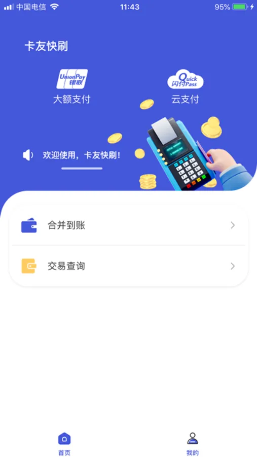卡友快刷app是针对批发零售、 连锁商店、餐饮娱乐及教育培训等各行各业有着收付款业务需求的商户推出的一款应用。它具有账户管理、查询、提现、修改密码等功能,致力于为中小企业提供便捷、高效、安全、贴心的服务。