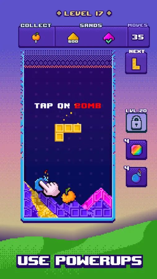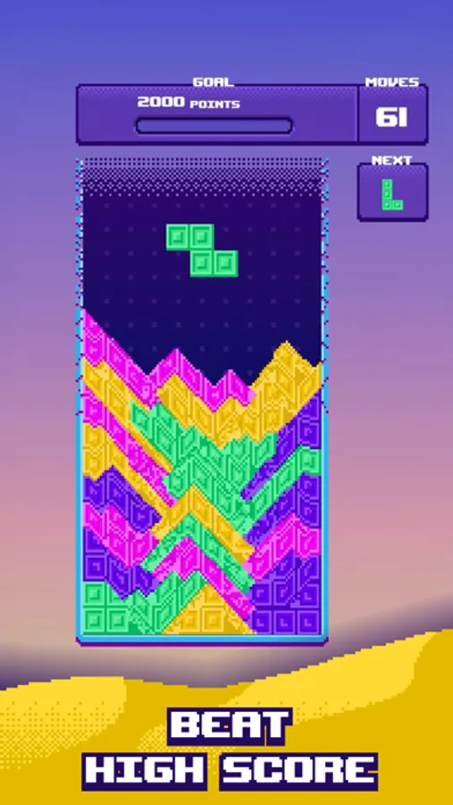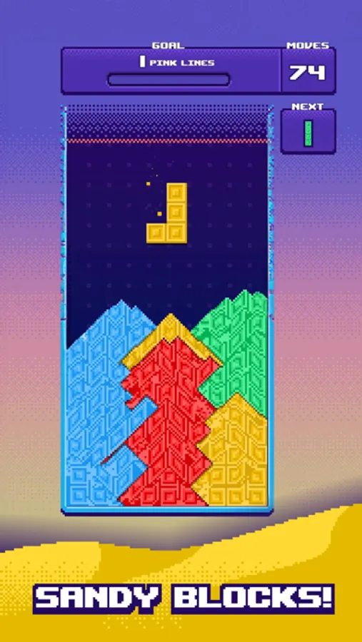 -Innovative Gameplay: Arrange the falling blocks with a twist! Watch them magically transform into soothing sand as they touch the ground.