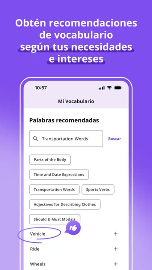 • Recibe recomendaciones personalizadas para enfocarte en la gramática y vocabulario que necesitas.