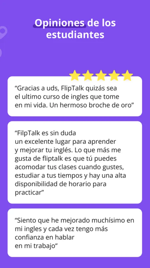 • Con FlipTalk puedes mejorar tus habilidades de conversación en solo 3 semanas. Probado y comprobado por miles de estudiantes.