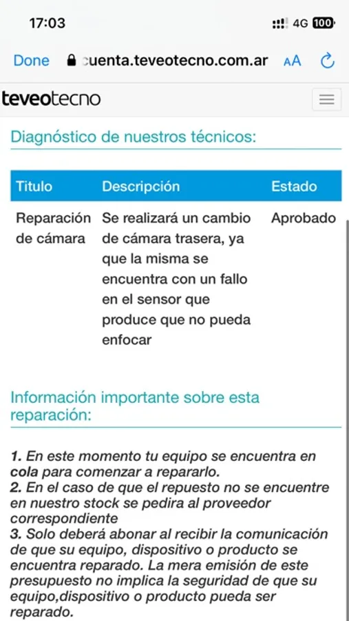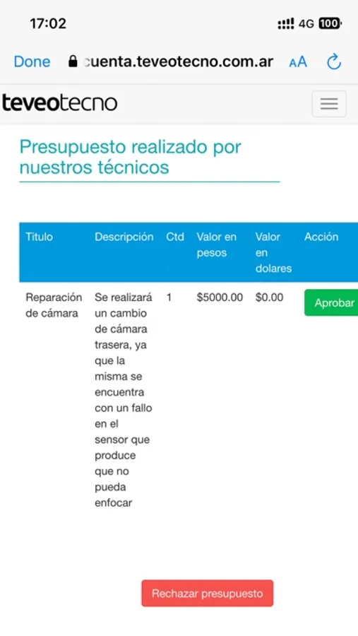 Gestión de Presupuestos Simplificada: Olvídate de los largos procesos de espera y la incertidumbre. Con la app de Teveotecno, recibirás presupuestos detallados para la reparación directamente en tu dispositivo. Examina cada detalle y decide si apruebas o rechazas el presupuesto, todo con un simple toque.