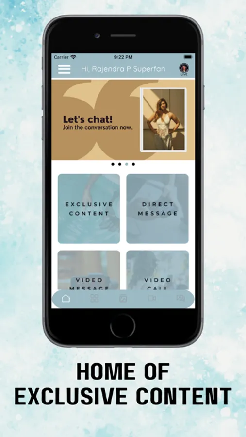 Get access to exclusive HD photos, HD videos, specially curated shows and of course, watch her as she goes LIVE.