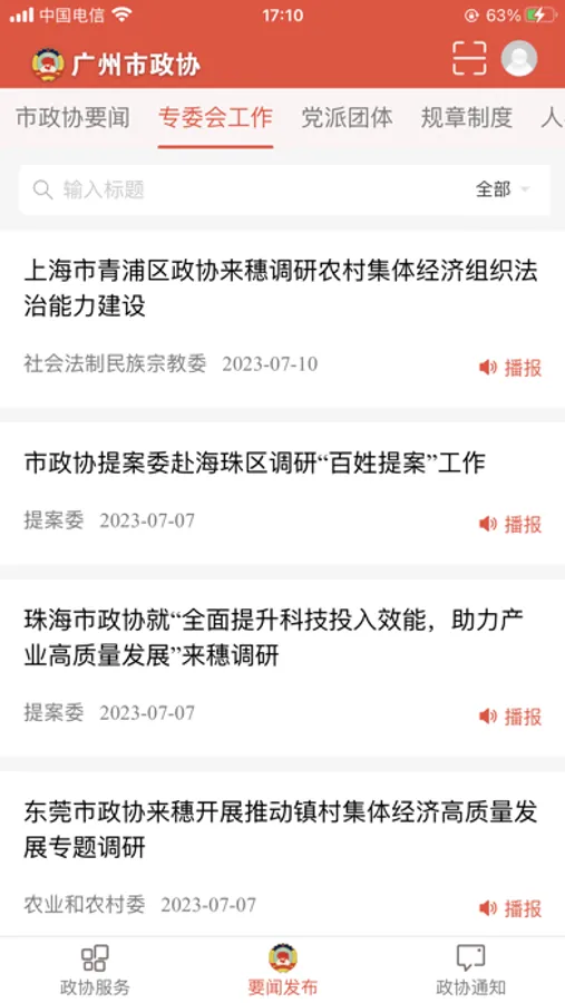 “穗协通”APP是集广州市政协工作动态浏览、提案管理、社情民意管理、履职管理、委员之家、网络议政、通知公告等功能于一体的移动端应用,为广州市政协委员随时随地进行履职提供便利。