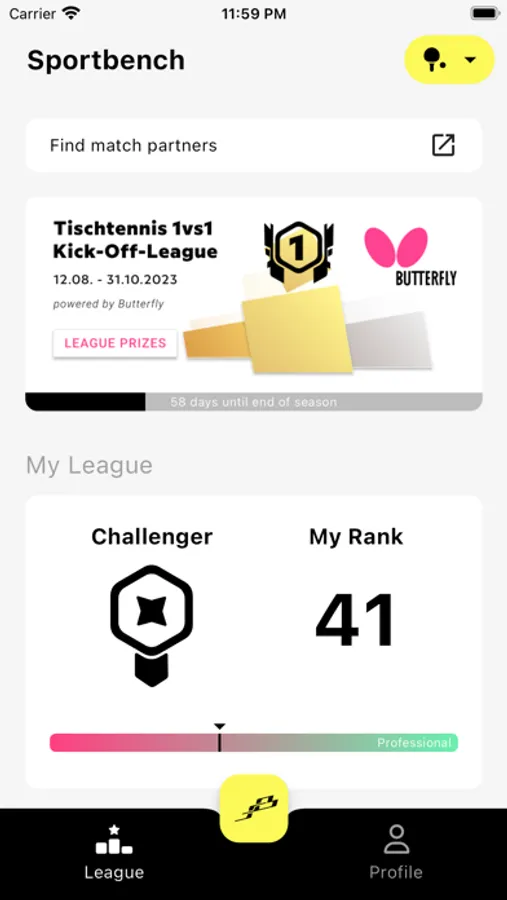 - 1vs1 Table Tennis league (Sponsored by Butterfly, prize pool worth +1000 €)