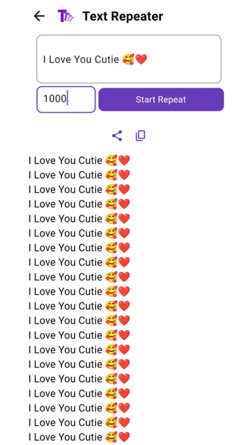 in text repetetive work. Text repeater , Spammer is a multifunction app which provides multiple text manipulation features like text repeater and emoji repeater plus bonus features of Emoji text means you can create text using emoji building blocks.