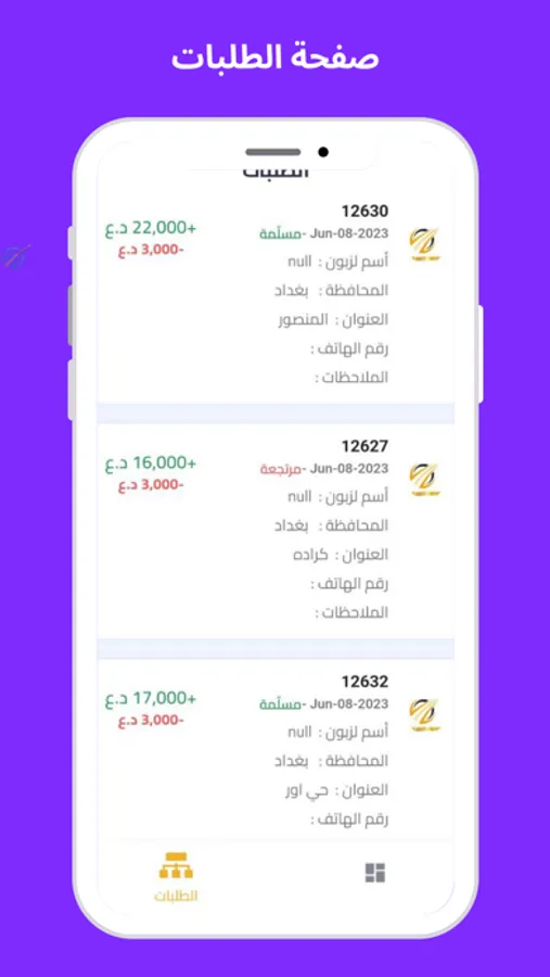 تطبيق سرعة الضوء لإدارة شركات التوصيل (نقل و توصيل البضائع) مع نظام متابعة طلبات العملاء ومتابعة المندوبين.