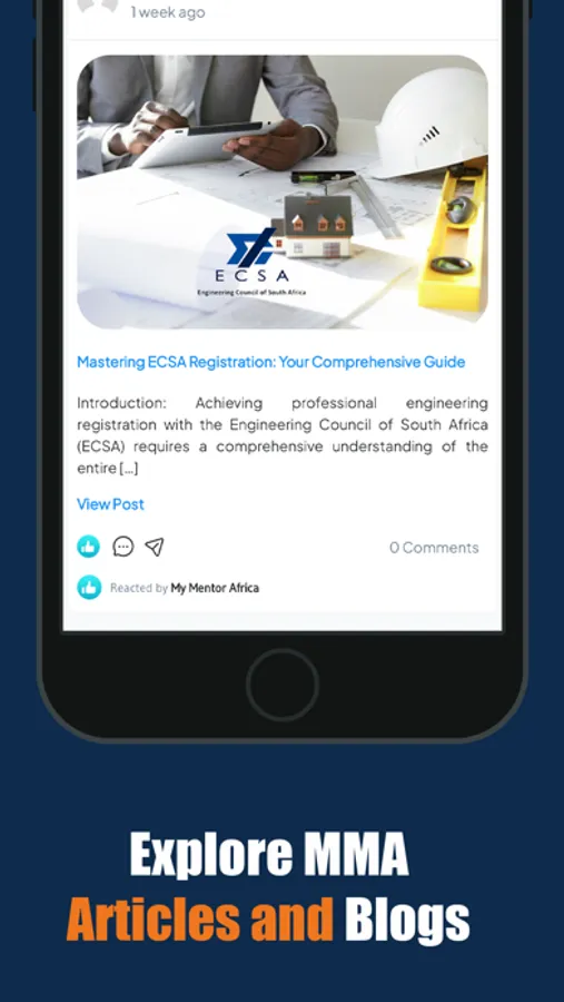Welcome to the My Mentor Africa App, the ultimate platform dedicated to empowering engineers and accelerating their professional growth. Please note that this app is not affiliated with ECSA, and all logos copyrights belong to their respective owners.