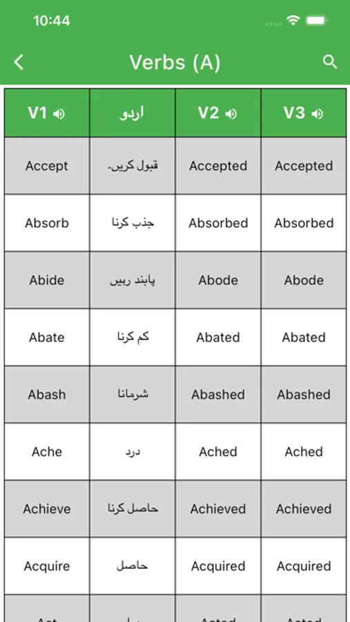 Vast Collection of Verbs: The app boasts an extensive database of commonly used English verbs, each accompanied by its precise Urdu meaning. Whether you're a beginner or an intermediate learner, this diverse selection of verbs will cater to your learning needs.