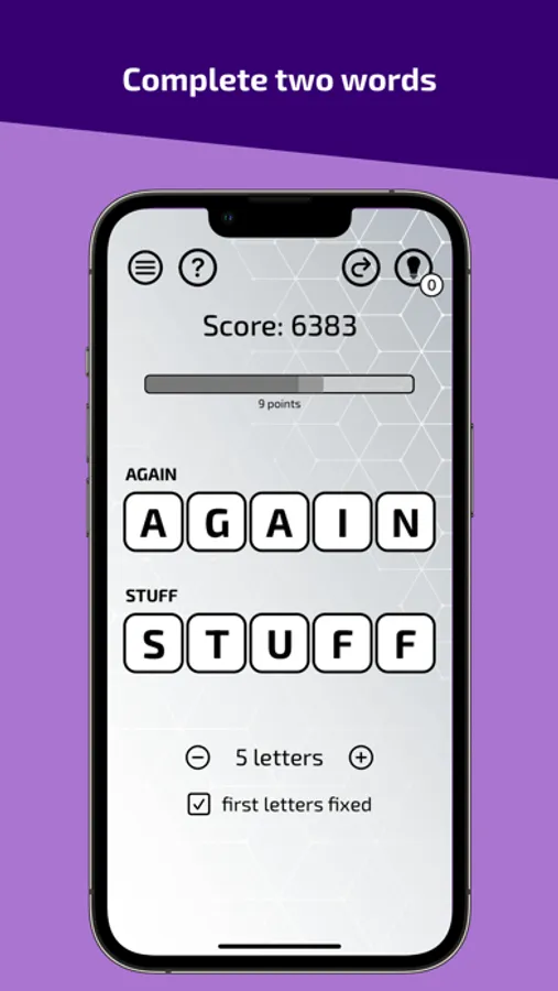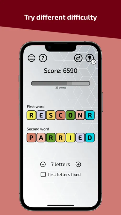 You can set the difficulty of the game by the number of letters in the words, and also whether the first letters in the words are fixed or not.