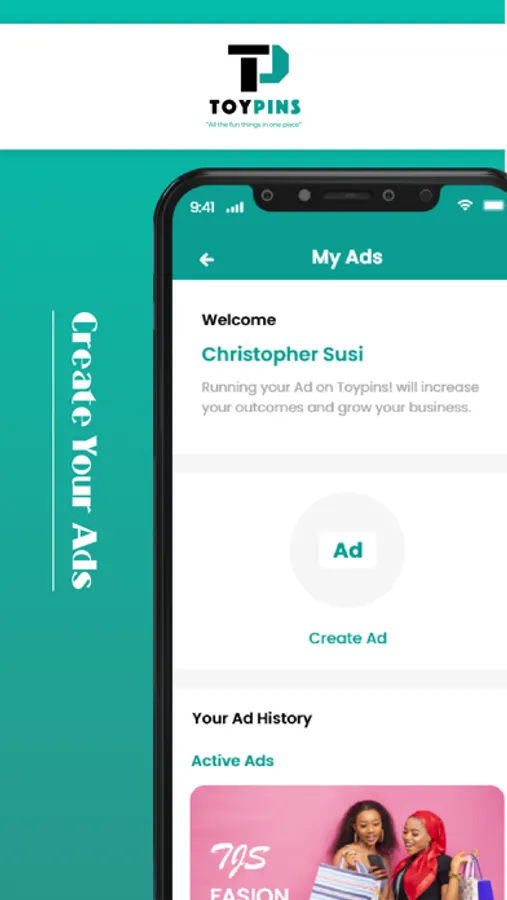 - Create & manage ads inside of the application for your shop or business.