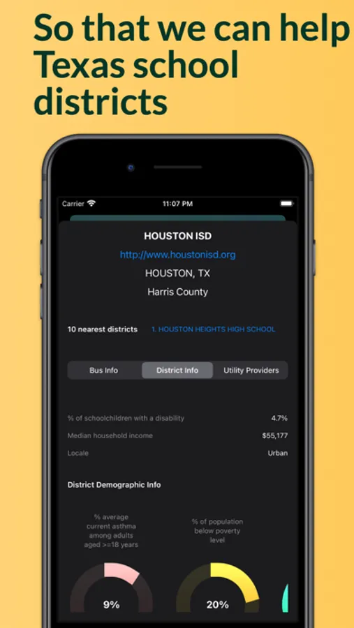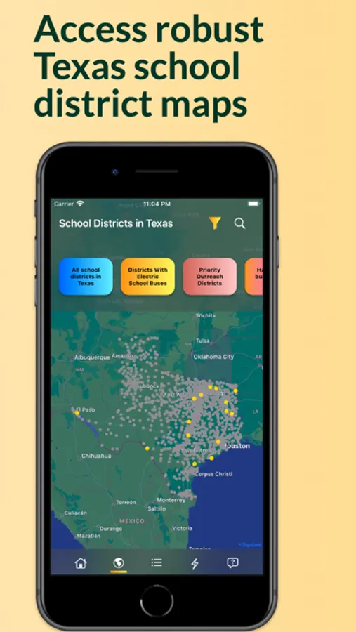 The Texas Electric School bus app is an app meant to help Texas school districts and OEMs transition school bus fleets from diesel to electric. Diesel exhaust is not only a known carcinogen, it is also linked to serious physical health issues such as asthma and heart disease. Exposure to diesel exhaust can also have serious cognitive development impacts.