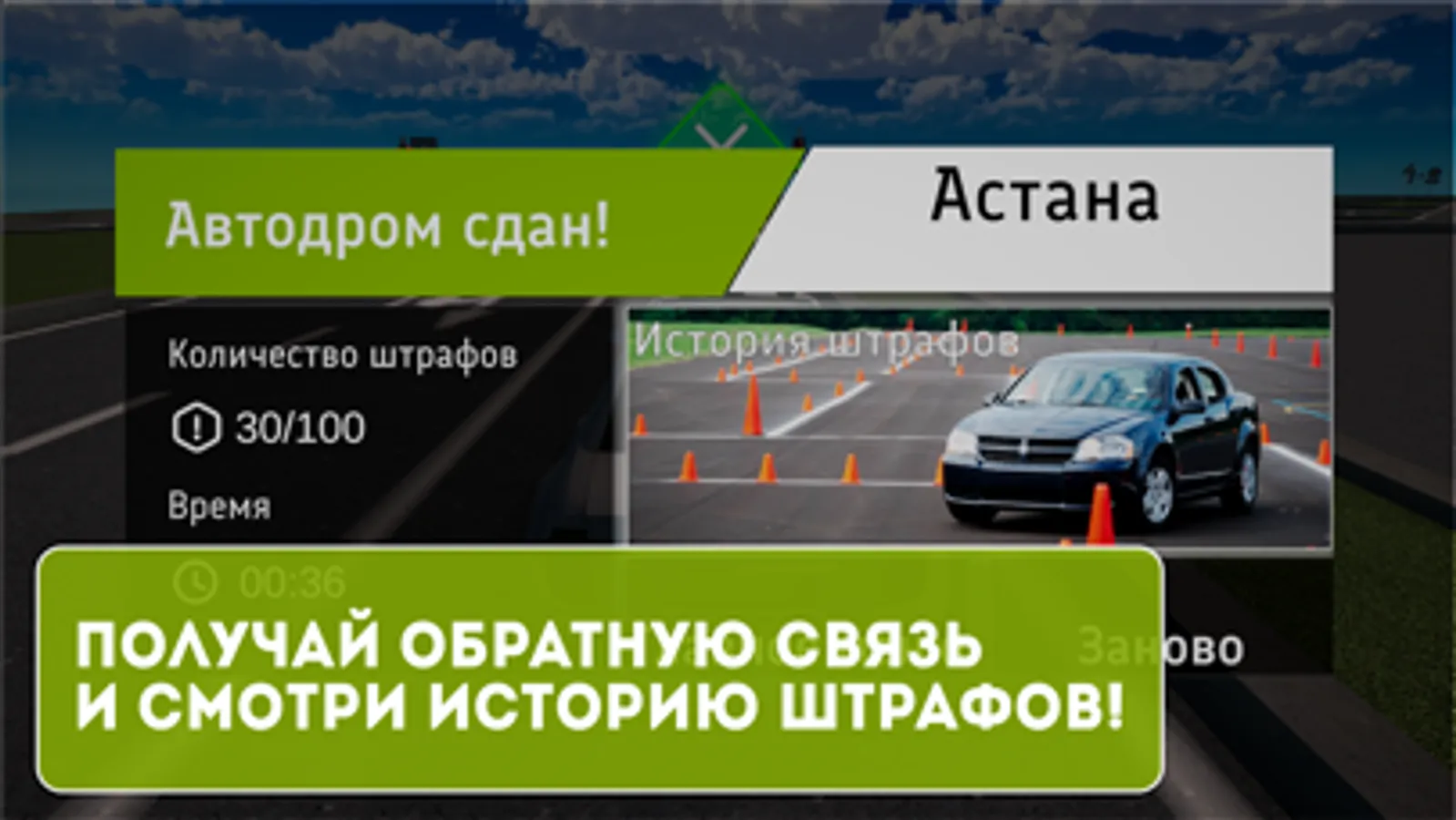 Наш симулятор полностью повторяет автодромы, на которых сдаются реальные тесты! Почувствуйте атмосферу настоящего автодром в Казахстане при сдаче практического теста. Здесь вы сможете пройти практические испытания, а также изучить особенности автодромов в разных городах.
