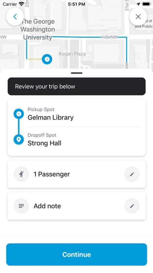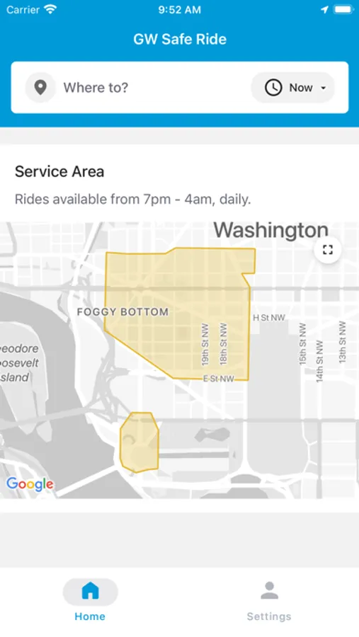 GW Safe Ride provides transportation services to students of George Washington University. To utilize this service, simply download the app, sign in using your GWU account, and request a ride!