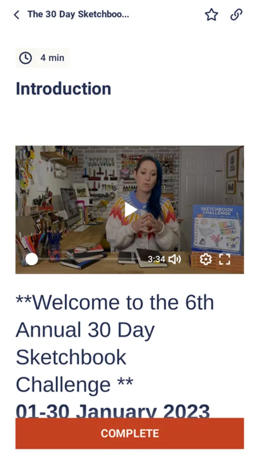 The Sketchbook Challenge App is the perfect way to start and build a positive sketching habit. In just 5 minutes a day, by watching the bite-sized videos, you can stay motivated and keep sketching for days, weeks or even months at a time.