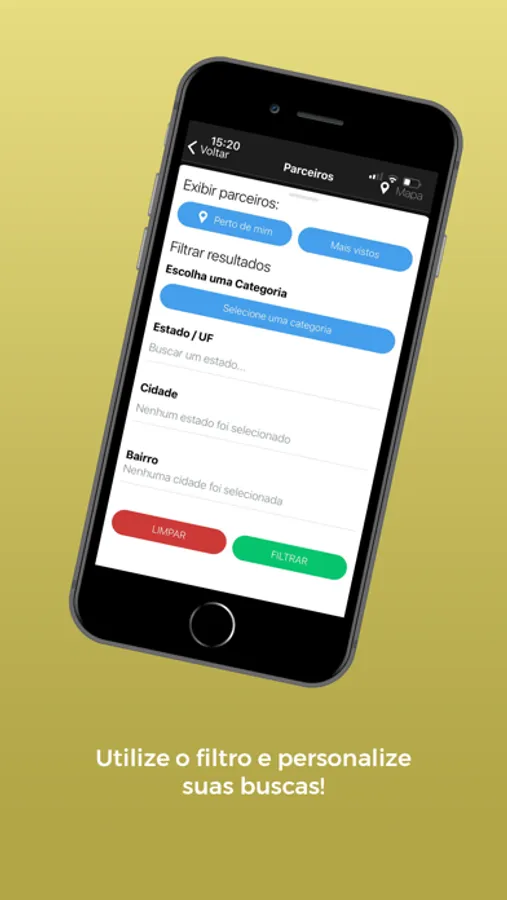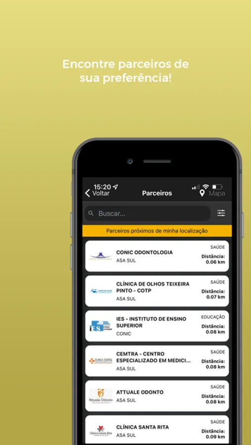 Busca de parceiros através do geolocalizador, filtragem personalizada para as buscas de empresas parceiras, acesso ao cartão virtual para utilizar os descontos, acesso a notícias e além do SAC para atendimento.