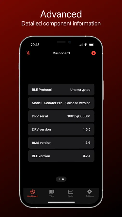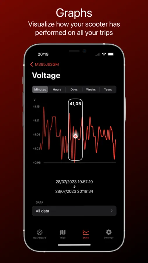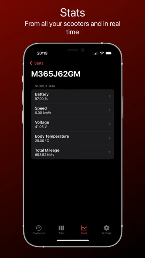 - Statistics: Access detailed graphs and retain data from multiple scooters for comprehensive tracking, whether you're connected or in offline mode.
