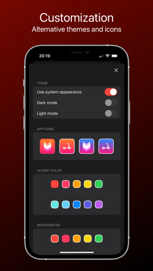 Elevate your driving experience to the next level with our monitoring and customization tool for electric scooters. Keep up to date with the status of your scooter in real time, customize its appearance, and optimize your route with our innovative and comprehensive features.