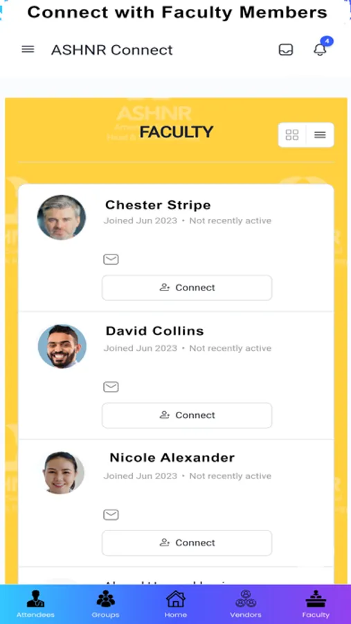 ASHNR Connect is a conference app for the American Society of Head and Neck Radiology's (ASHNR) Annual Meeting. It is intended for registrants of the meeting to view the meeting’s program, exhibitors, connect with other attendees and receive notifications in real time about the meeting.