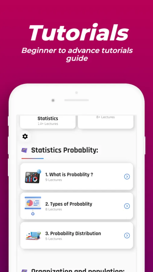 This app Learn statics consists a lot of good topics that will help you to learn fast. the list of topics are given below
