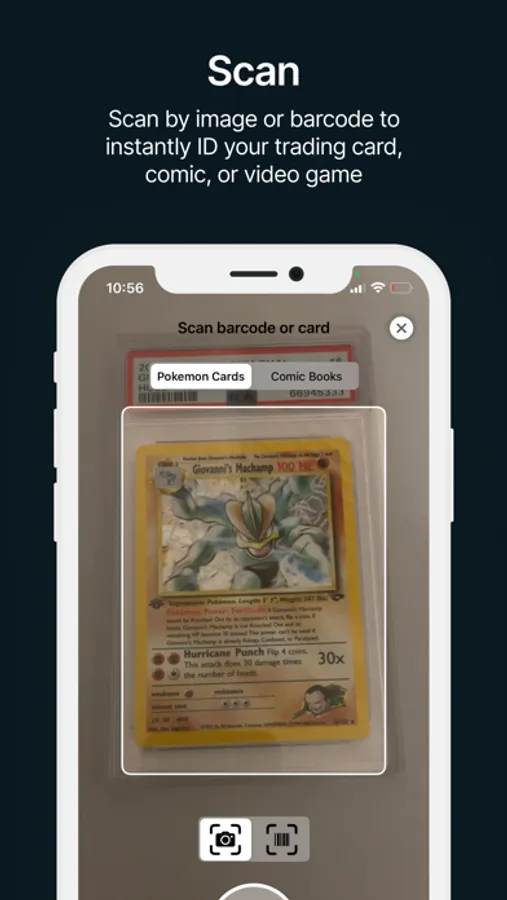 - Use Search By Photo or Barcode Scanner to instantly ID your trading card or comic.