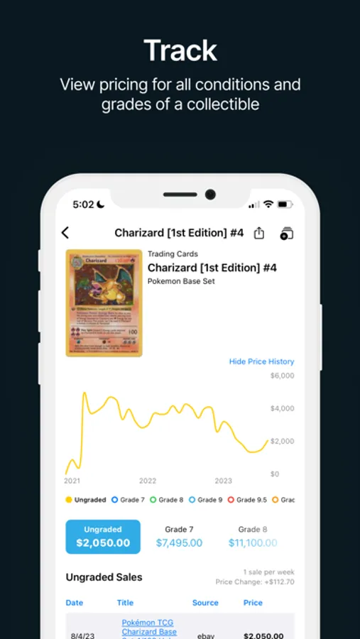 - Get grading recommendations for your ungraded collectibles that would gain the most value