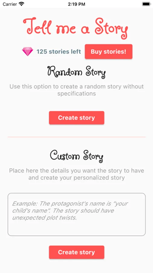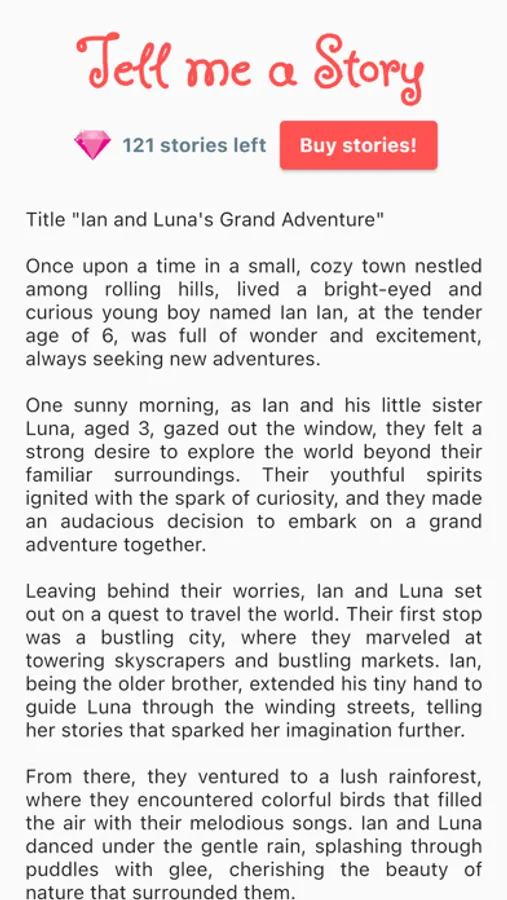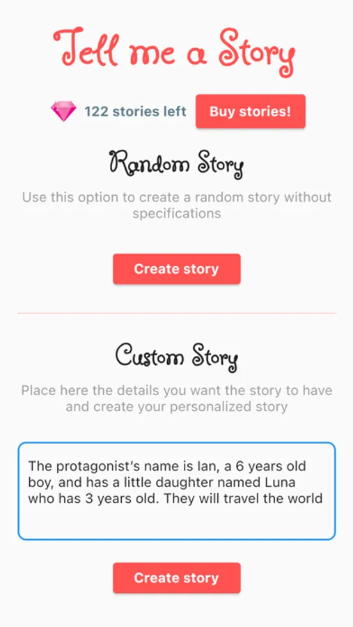 "Tell me a Story" is an application that is capable of creating fantasy stories so that you can tell them to your children. From random stories, to stories where you can lay the foundations of the plot yourself, names of the characters (your child could be the protagonist), or any other specification you can write.