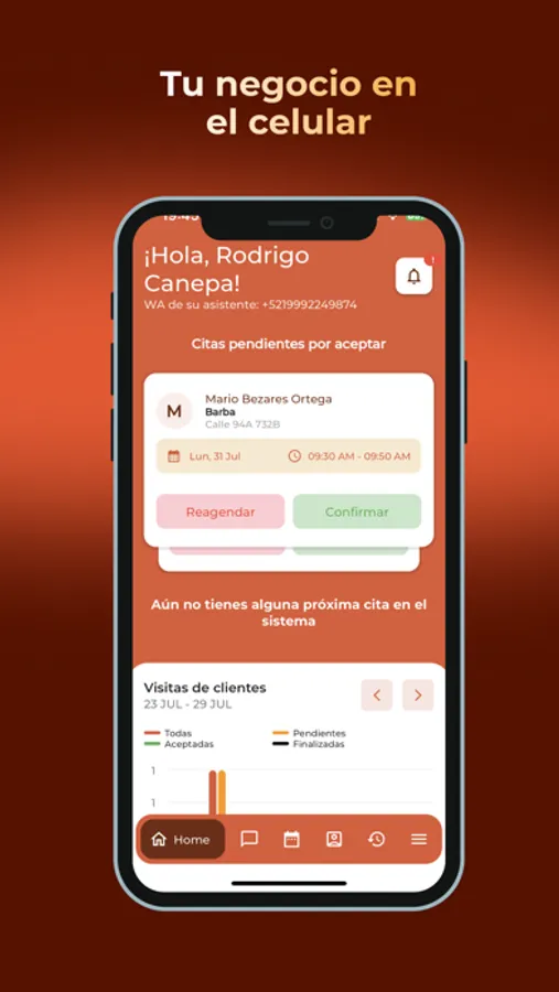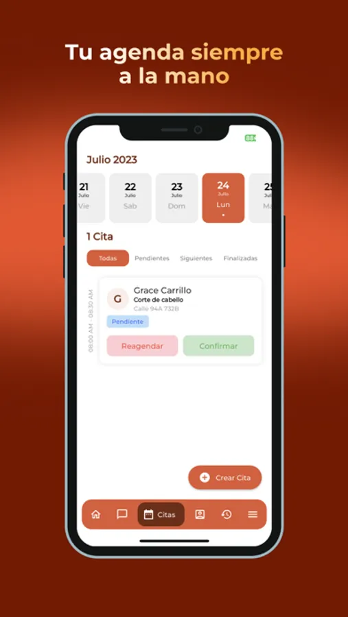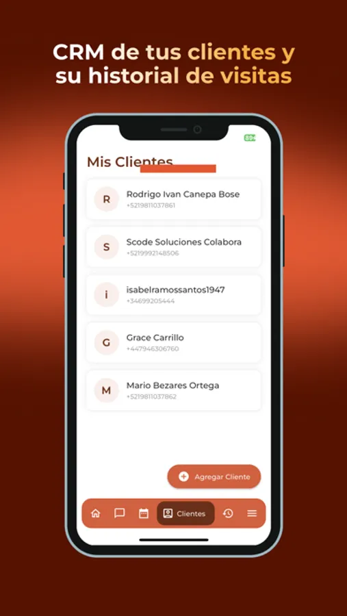 Maneja tu agenda, contacta a tus clientes y revisa su historial desde el celular en cualquier momento que lo necesites.