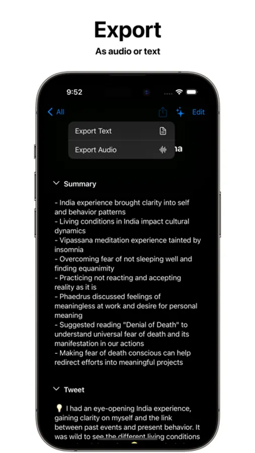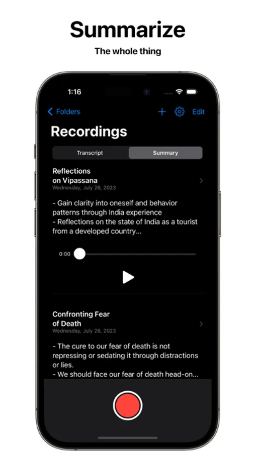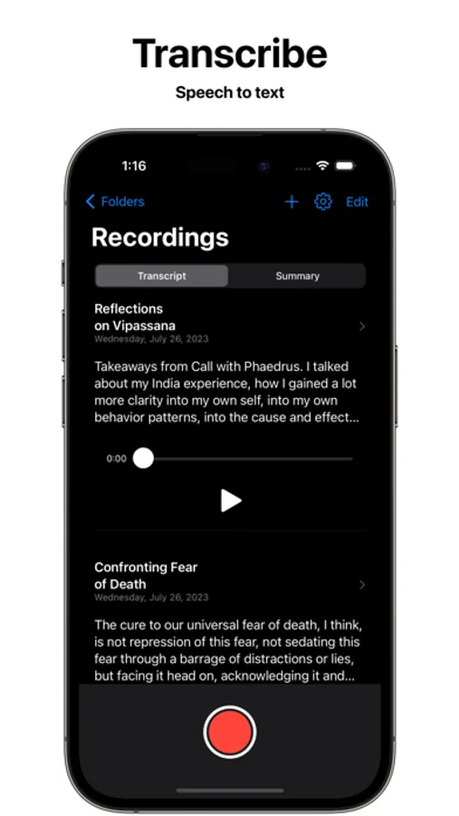 Speak, transcribe, summarize. Monolog transcribes and summarizes your voice recordings. It converts your recordings into text across 90+ languages, even with heavy accents or rapid speech. With Monolog, turn your voice recordings into actionable tasks, vivid ideas, or reflective journals.