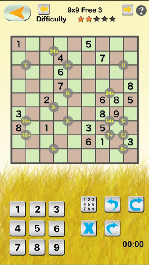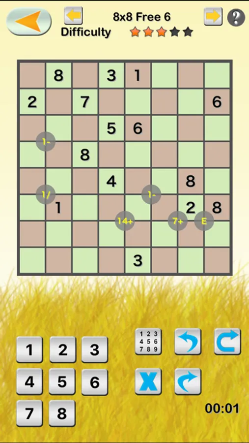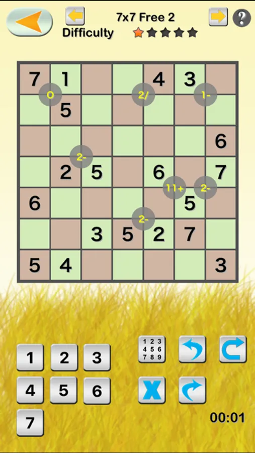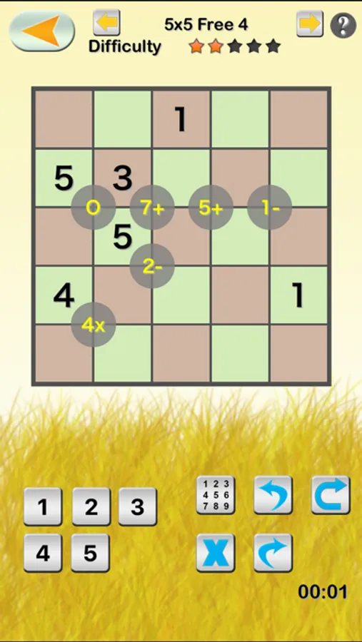 - A number and a sign of mathematical operation (addition, subtraction, multiplication, division) - a number is a result of an operation execution with numbers in diagonally adjacent cells.