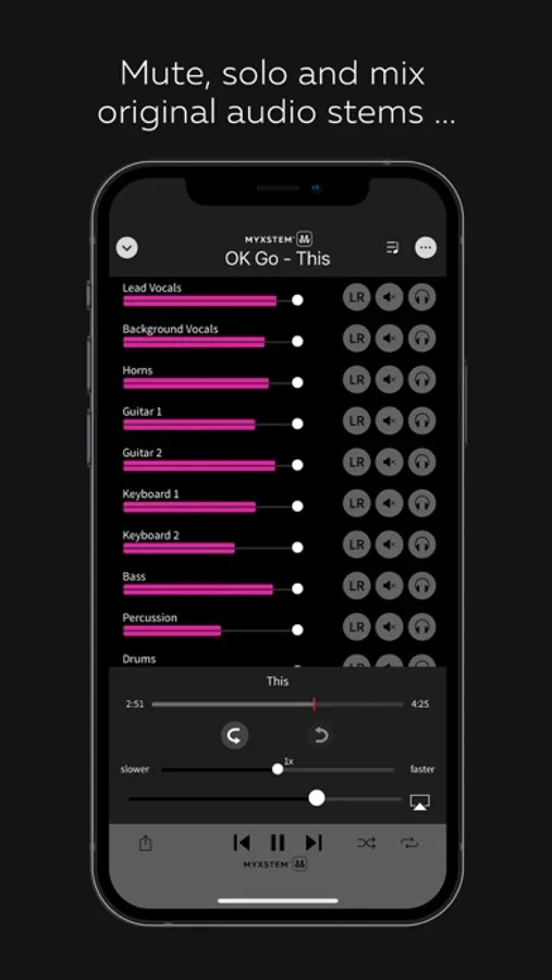 “This” by OK Go has been made available as a Myxstem app. Myxstem (pronounced "mix-stem") is a new format that empowers fans to completely control the listening experience by adjusting levels of each instrument (stem) to solo, mute, pan, loop and access lyrics in a fun and immersive way, similar to being at the mixing board of a recording studio.