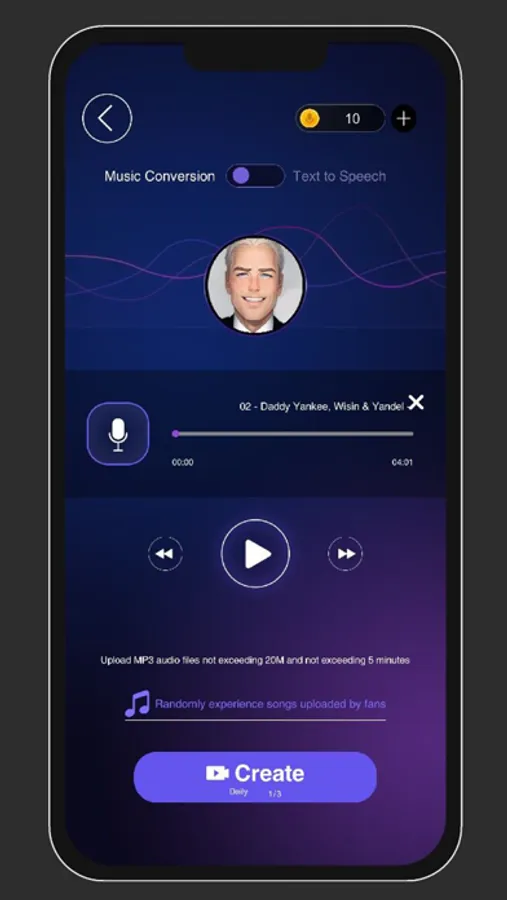 Welcome to Music AI, the groundbreaking app that transforms your words into music using the voices of your favorite celebrities! Simply input text or upload an audio clip, select a celebrity voice, and let Music AI create your unique sound.