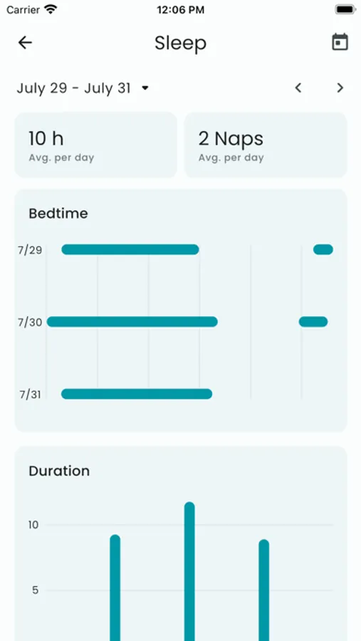 - Average sleep duration