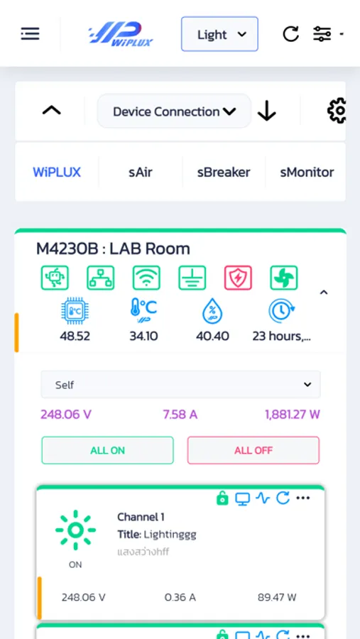 Wi-Control/Configure : Switch ON/OFF individual channel via the Web App in realtime.